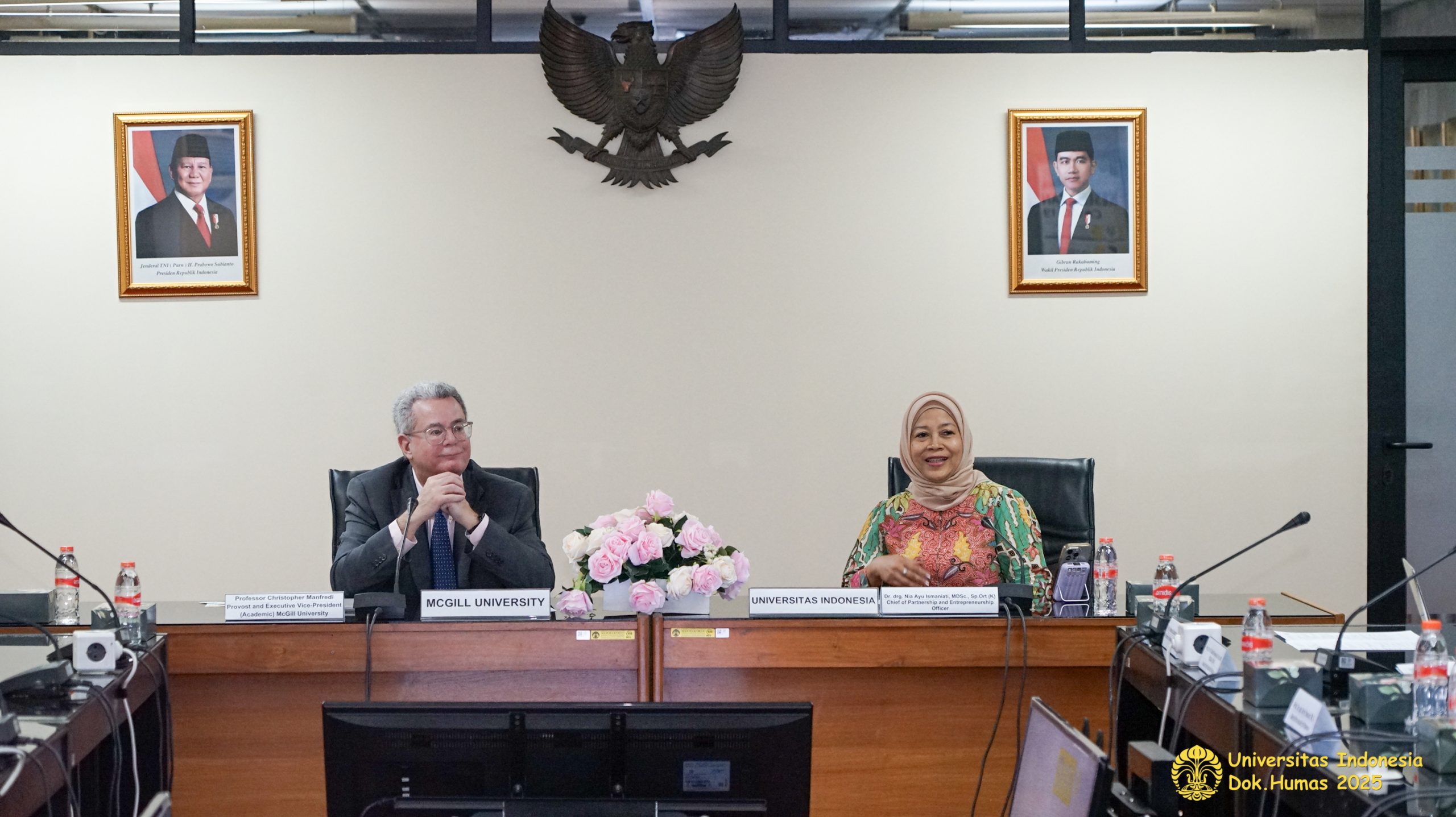 Universitas Indonesia (UI) welcomed a delegation from McGill University to discuss the enhancement of academic collaboration and future joint initiatives. The meeting was led by Dr. drg. Nia Ayu Ismaniati, MDSc., Sp.Ort(K), UI’s Chief of Partnership and Entrepreneurship Officer, and attended by representatives from multiple UI faculties and directorates. McGill University was represented by Professor Christopher Manfredi, Provost and Executive Vice-President (Academic).